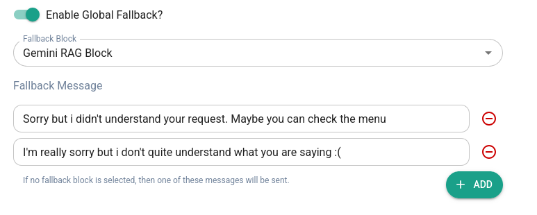 * Some Hexabot blocks configurations might allow you to define specific conditions that trigger the global fallback message.
